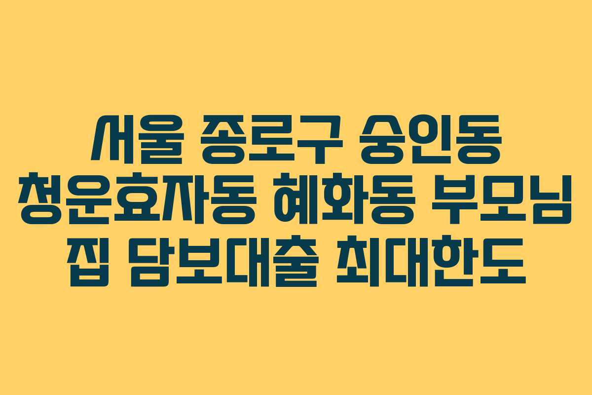 서울 종로구 숭인동 청운효자동 혜화동 부모님 집 담보대출 최대한도