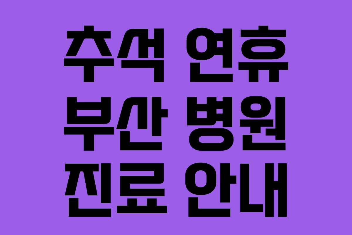 추석 연휴 동안 병원 진료를 받을 수 있는 방법에 대해 알아보겠습니다. 갑작스러운 건강 문제에 대비해 부산 지역의 휴일 운영 병원을 찾아보는 것이 중요합니다.