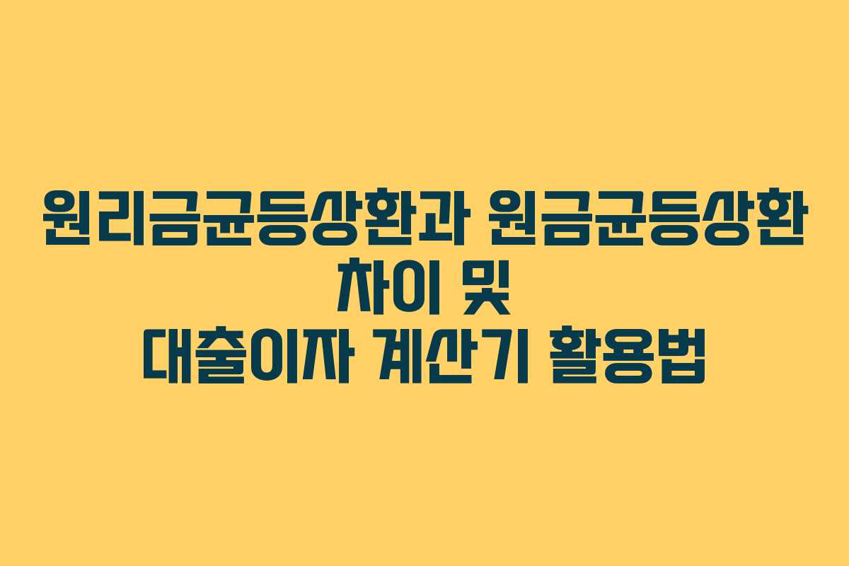 원리금균등상환과 원금균등상환 차이 및 대출이자 계산기 활용법