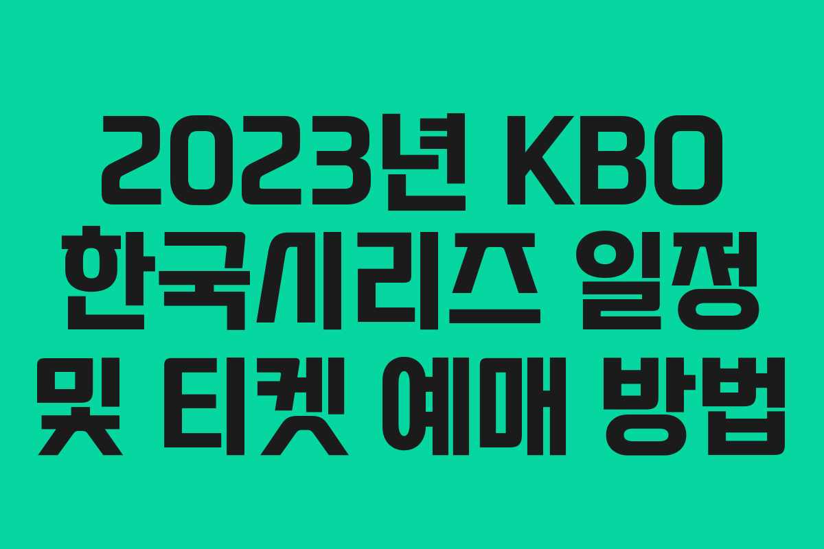 2023년 KBO 정규 시즌이 마무리되면서 LG트윈스가 29년 만에 정규 시즌 1위를 차지했습니다. 이에 따라 한국시리즈가 시작될 예정인데, 이 글에서는 한국시리즈의 경기 일정과 티켓 예매 방법에 대해 자세히 알아보겠습니다.