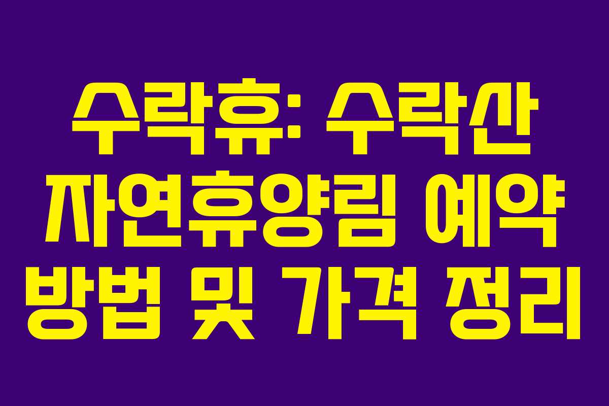수락산에 위치한 수락휴는 서울 최초의 도심형 자연휴양림으로, 도심에서 쉽게 접근할 수 있는 힐링 공간입니다. 이곳에서는 자연을 만끽하며 일상에 지친 몸과 마음을 치유할 수 있습니다. 이번 글에서는 수락휴의 예약 방법, 객실 가격, 그리고 부대시설에 대해 자세히 알아보겠습니다.