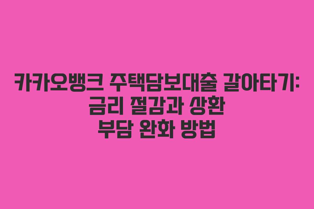 카카오뱅크 주택담보대출 갈아타기: 금리 절감과 상환 부담 완화 방법