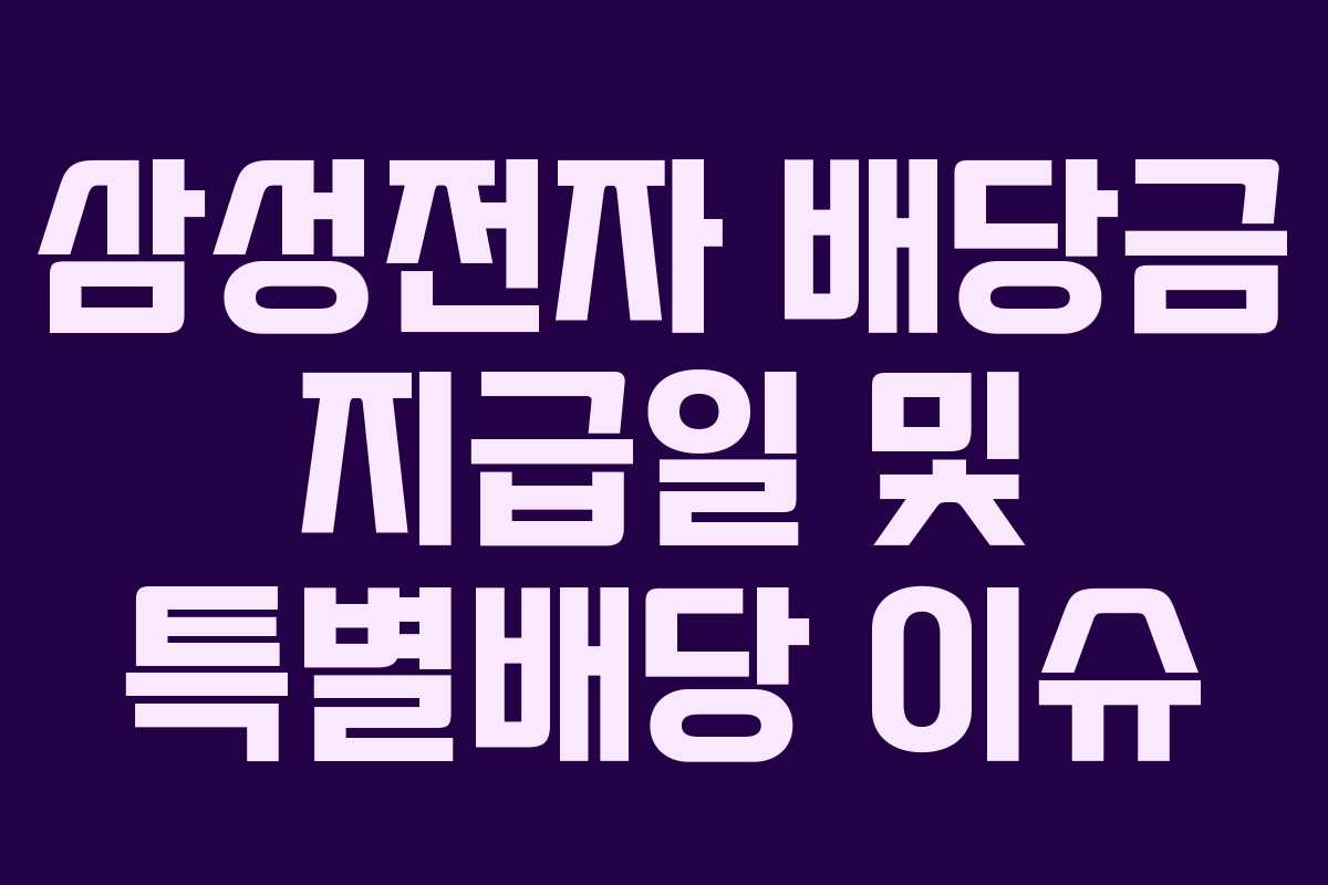 특별 배당금은 기업이 주주에게 추가로 지급하는 배당금으로, 일반 배당금과는 별도로 지급됩니다. 삼성전자는 특별 배당금 지급에 대한 기대감이 높아지고 있습니다.
