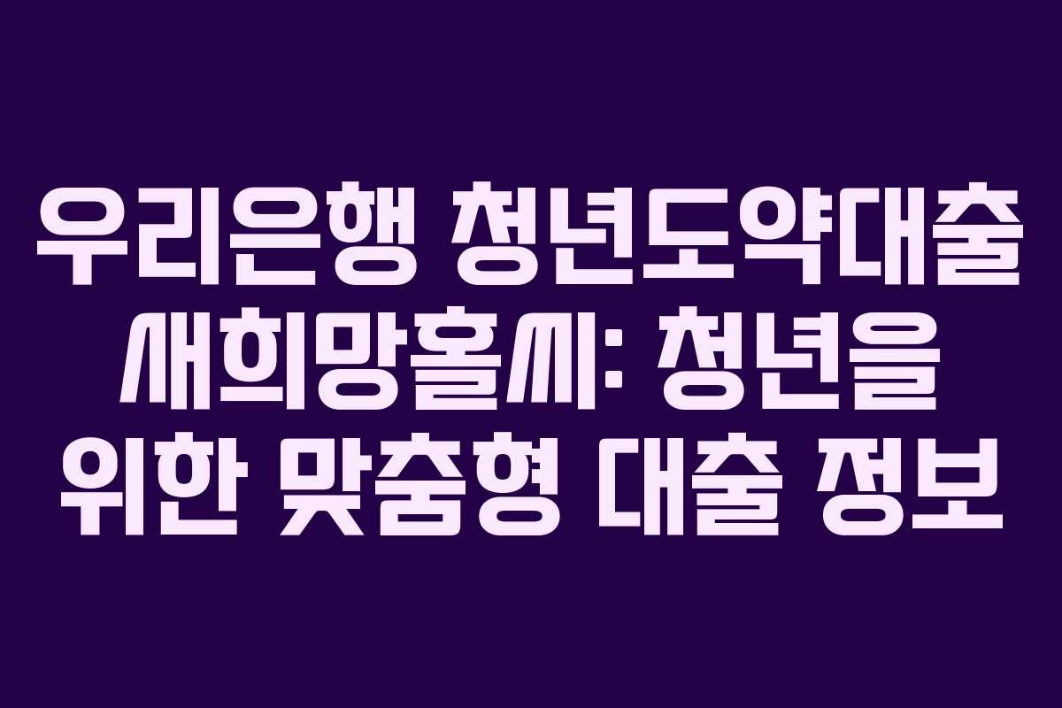 우리은행 청년도약대출 새희망홀씨: 청년을 위한 맞춤형 대출 정보