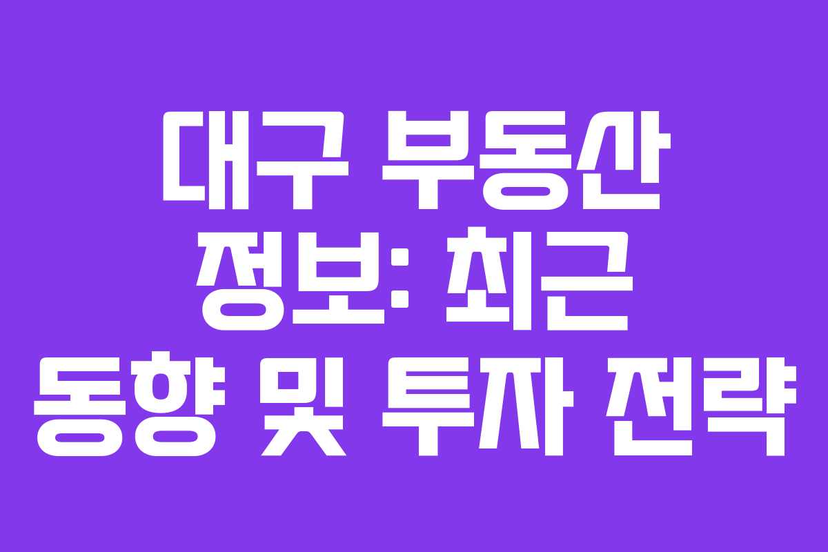 대구 부동산 투자 시 유의해야 할 점은 무엇인가요?