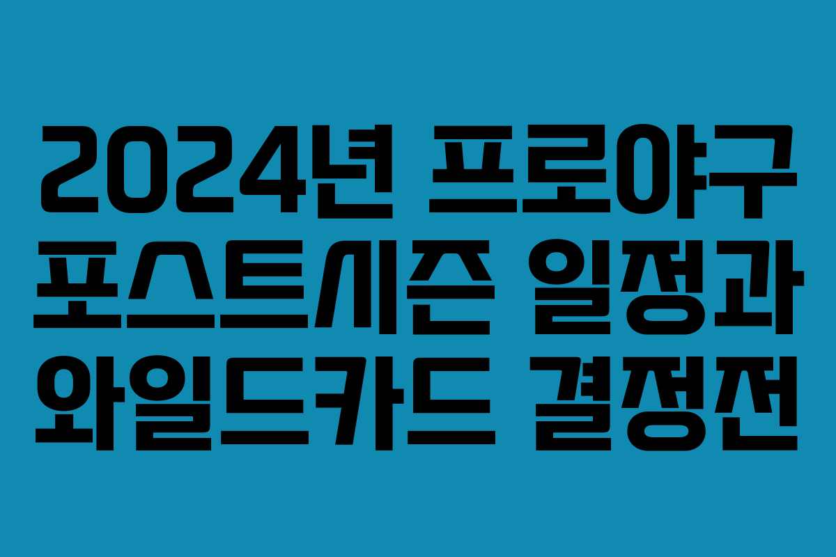 2024년 포스트시즌은 10월 2일 수요일 와일드카드 결정전으로 시작되며, 한국시리즈는 10월 29일 화요일에 종료될 예정입니다. KIA 타이거즈는 한국시리즈에 직행했으며, 다른 팀들은 플레이오프와 준플레이오프를 통해 경쟁하게 됩니다.