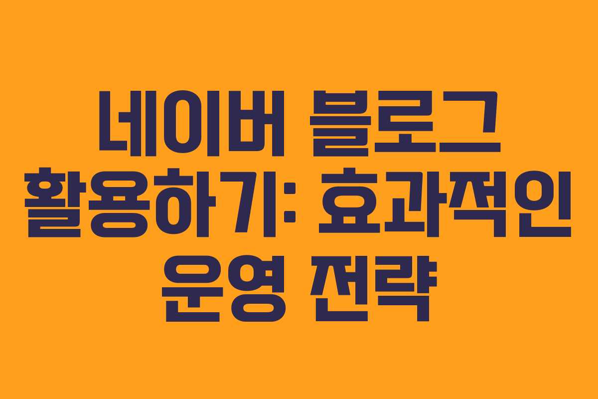 네이버 블로그 활용하기: 효과적인 운영 전략