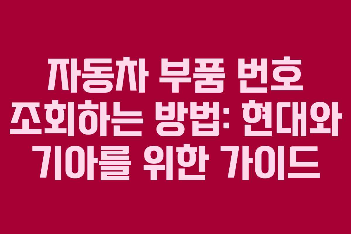 자동차 부품 번호를 정확히 조회하는 것은 차량 관리에 있어 매우 중요한 과정입니다. 특히 현대차와 기아차 소유자라면 현대모비스의 부품 조회 시스템을 활용해 필요한 부품 정보를 쉽게 찾을 수 있습니다.