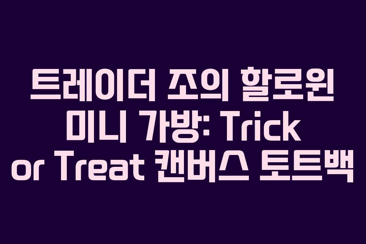 트레이더 조의 Trick-or-Treat 미니 캔버스 토트백은 할로윈을 맞아 실용적이면서도 귀여운 디자인으로 주목받고 있습니다. 이 가방은 가격이 저렴하여 소비자들에게 큰 인기를 끌고 있으며, 다양한 활용도로 인해 실용성 또한 뛰어납니다. 할로윈 시즌 동안 소중한 추억을 담아낼 수 있는 이 가방을 통해, 더욱 즐거운 할로윈을 만끽하시기 바랍니다.