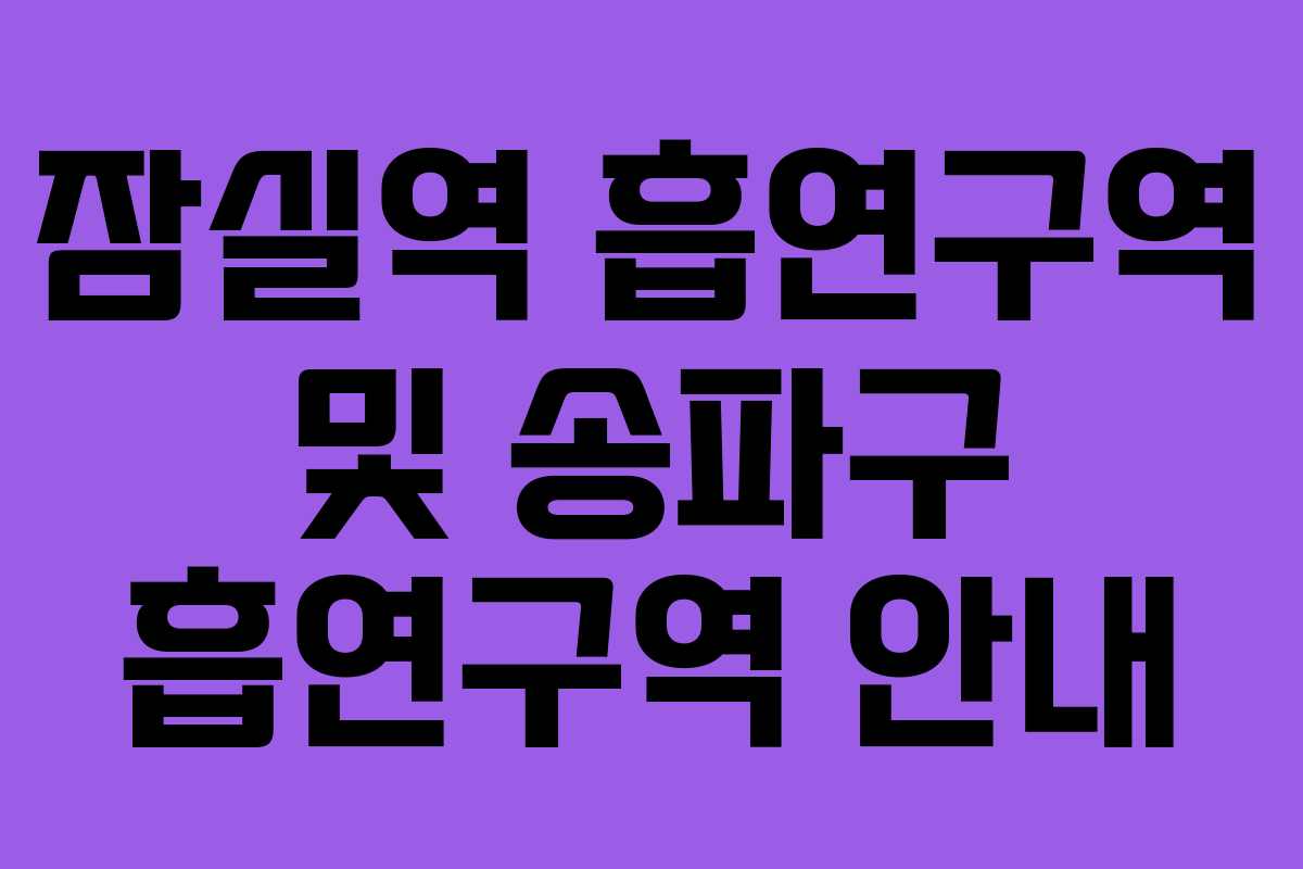 잠실역은 서울의 중심지로, 롯데월드와 잠실야구장 같은 다양한 문화시설이 밀집해 있어 많은 방문객들이 찾는 곳입니다. 그러나 공공장소에서의 흡연이 제한되기 때문에 흡연자들에게는 적절한 흡연 공간을 찾는 것이 필요합니다. 이 글에서는 잠실역 내 흡연구역과 송파구 전체의 흡연구역에 대한 정보를 제공합니다. 이를 통해 흡연자들이 보다 편리하게 흡연 공간을 활용할 수 있도록 돕고자 합니다.