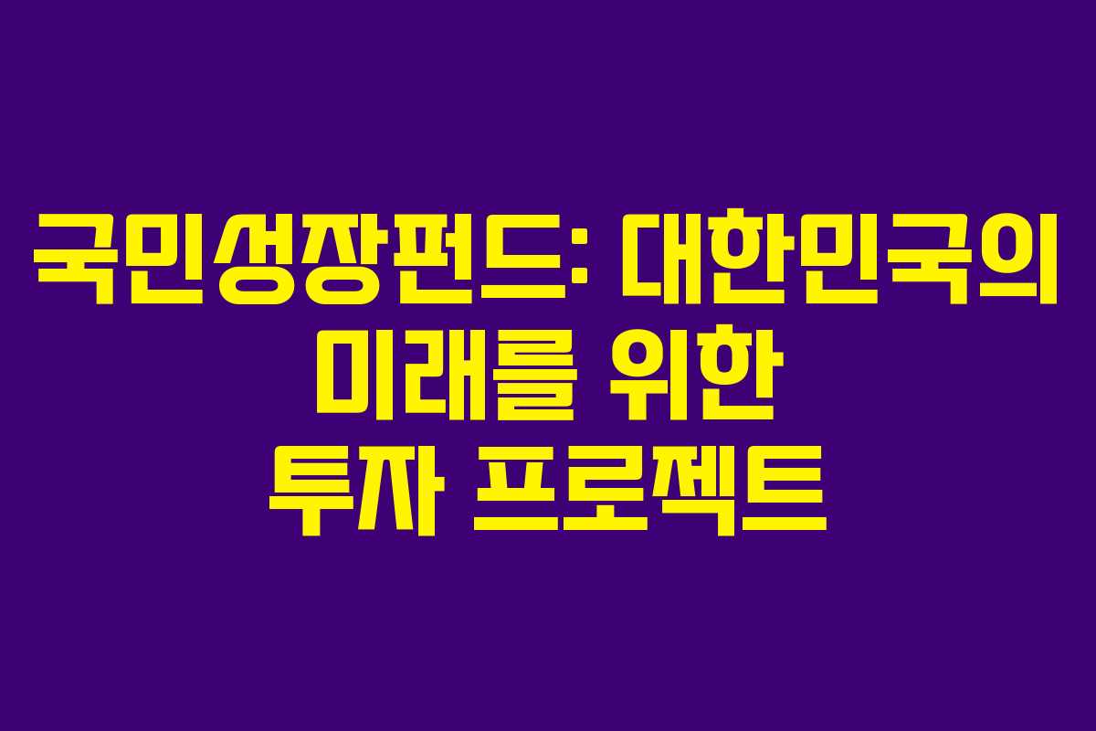 국민성장펀드는 한국 경제의 지속 가능한 성장을 위해 첨단산업에 대한 대규모 투자를 통해 새로운 성장 동력을 확보하려고 합니다.
