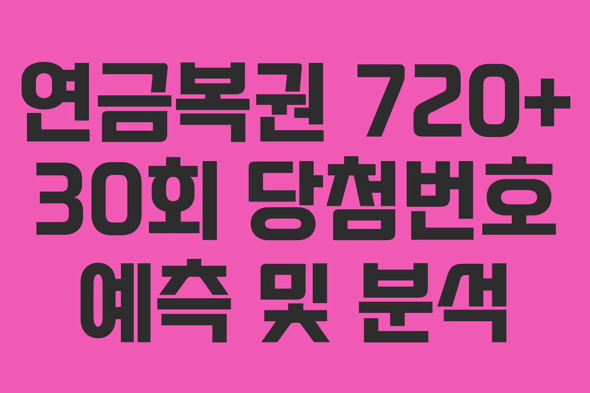 30회 연금복권 당첨번호 예측