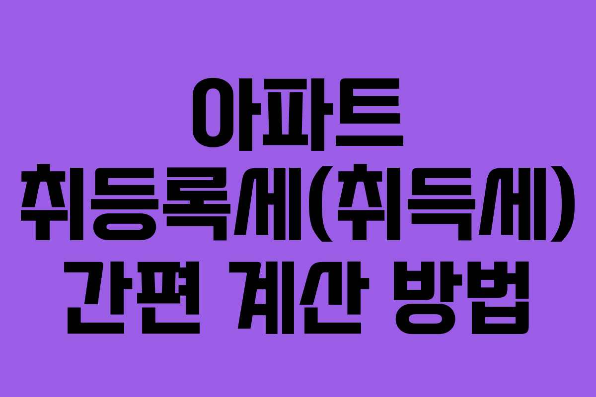 아파트 취등록세(취득세)는 매매, 교환, 신축, 상속, 증여 등 다양한 방법으로 주택을 취득할 때 발생하는 세금입니다. 이 글에서는 아파트 취등록세를 간편하게 계산하는 방법과 관련된 정보를 소개하겠습니다.