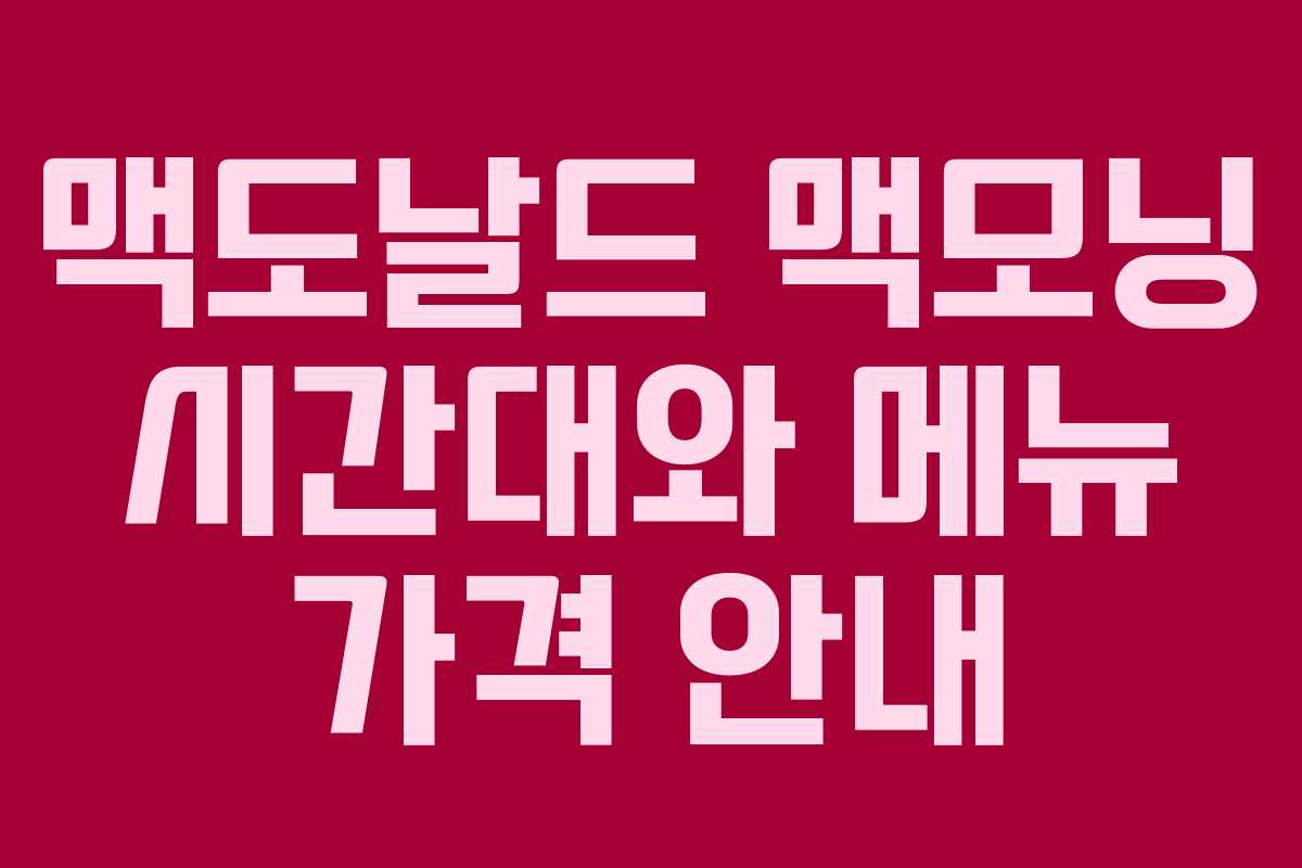 바쁜 아침에 맥모닝을 즐기고 싶다면, 매장 방문 전에 운영 시간을 확인하는 것이 좋습니다. 특히, 아침 시간에 맞춰 미리 가는 것이 필요합니다.