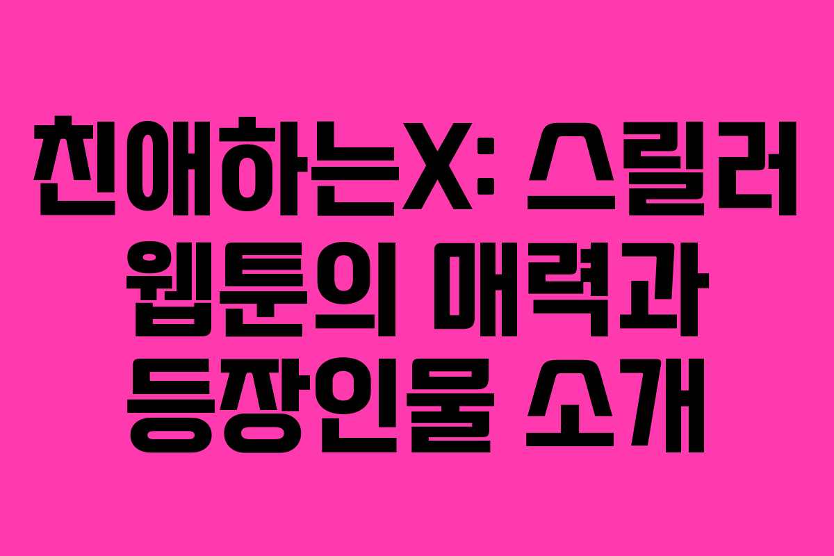 웹툰 친애하는X는 스릴러 장르로, 네이버에서 매주 토요일 연재되었으며 2020년 8월 15일에 마지막 화가 공개되었습니다. 작가 ‘반지운’의 작품으로, 네이버 웹툰 최강자전에서 8강에 진출할 만큼 많은 사랑을 받았습니다. 이 작품은 국내 최고의 여자 배우인 백아진의 몰락을 중심으로 한 이야기로, 총 4부로 구성되어 있습니다. 각 부의 제목을 합치면 “I am not provoke heartless monster”라는 의미를 담고 있습니다.