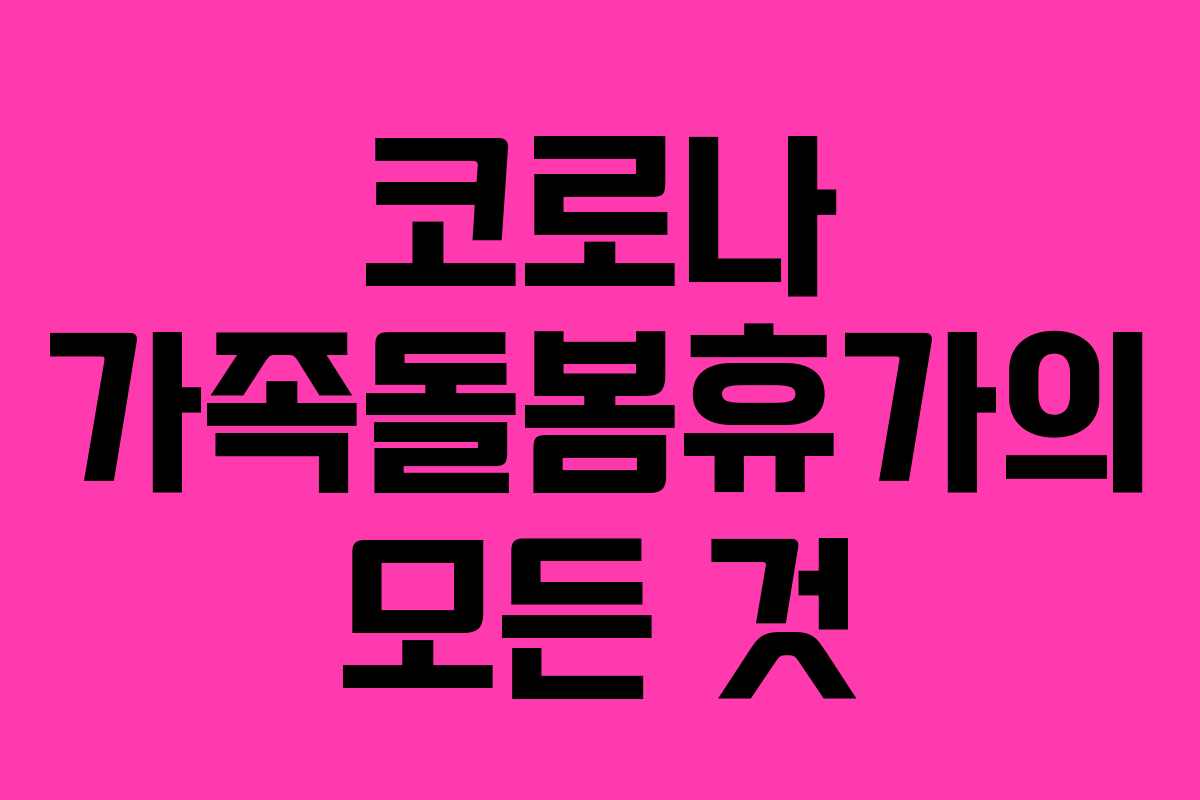 코로나 가족돌봄휴가는 가족과 근로자의 안정성을 높이는 중요한 제도입니다. 이를 통해 가족의 웰빙을 유지하고, 경제적 부담을 덜 수 있는 방법을 활용하시기 바랍니다.