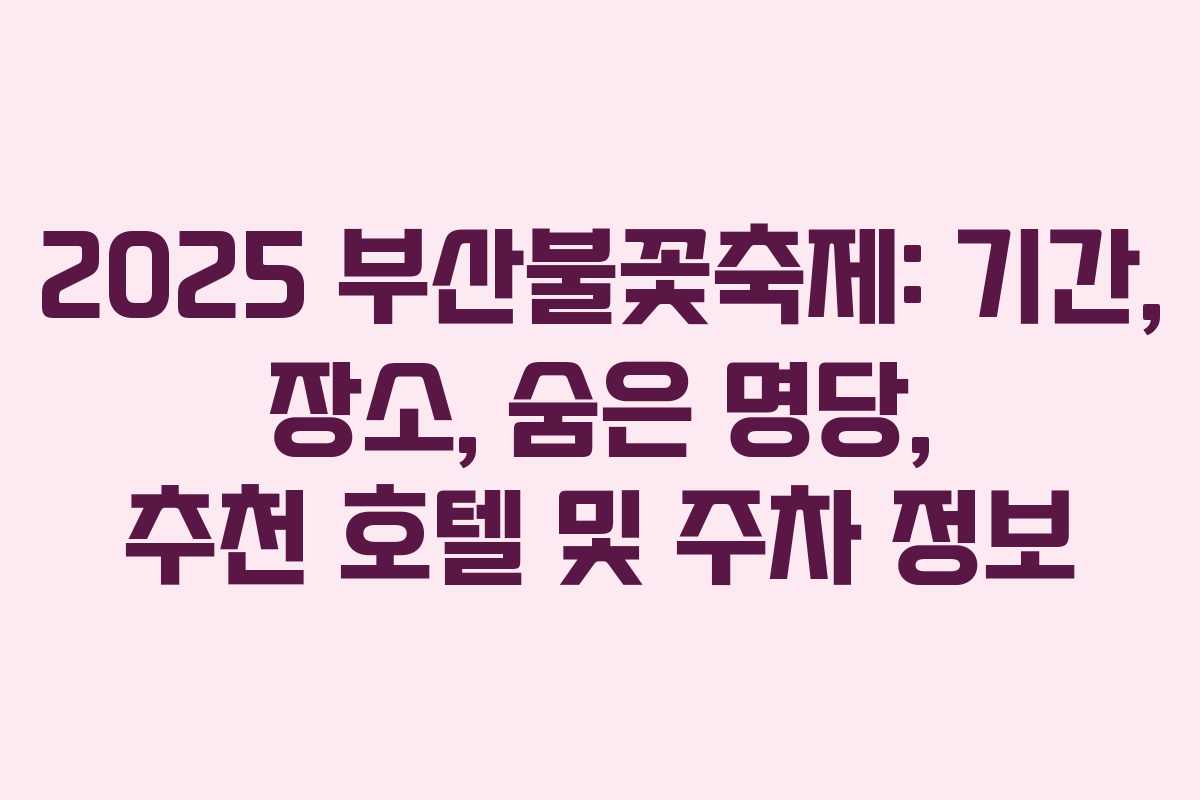 부산의 가을을 화려하게 수놓는 2025 부산불꽃축제가 곧 시작됩니다. 이번 축제는 다양한 프로그램과 함께 많은 이들의 기대를 모으고 있습니다. 아래에서는 축제를 즐기기 위한 필수 정보를 정리했습니다.