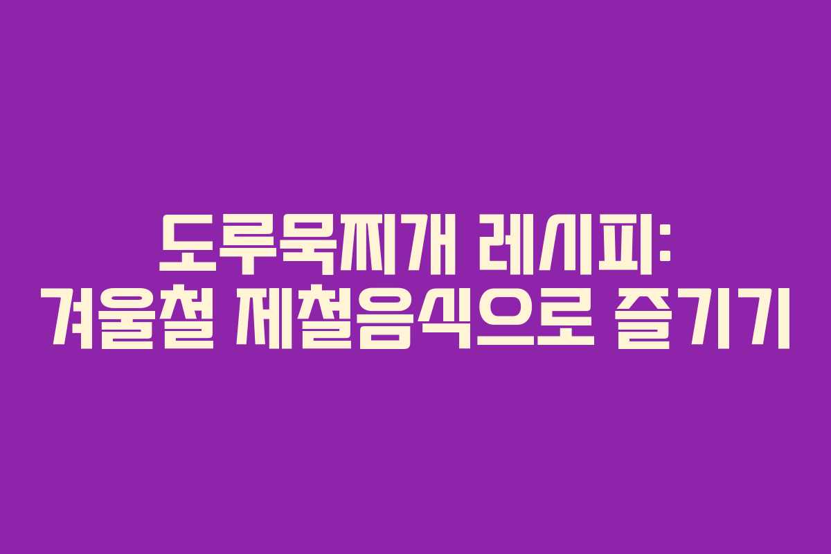 겨울철 제철음식 중 하나인 도루묵은 맛이 좋고 영양가가 높아 많은 사랑을 받습니다. 이번에는 간단하게 만들 수 있는 도루묵찌개 레시피를 소개합니다.