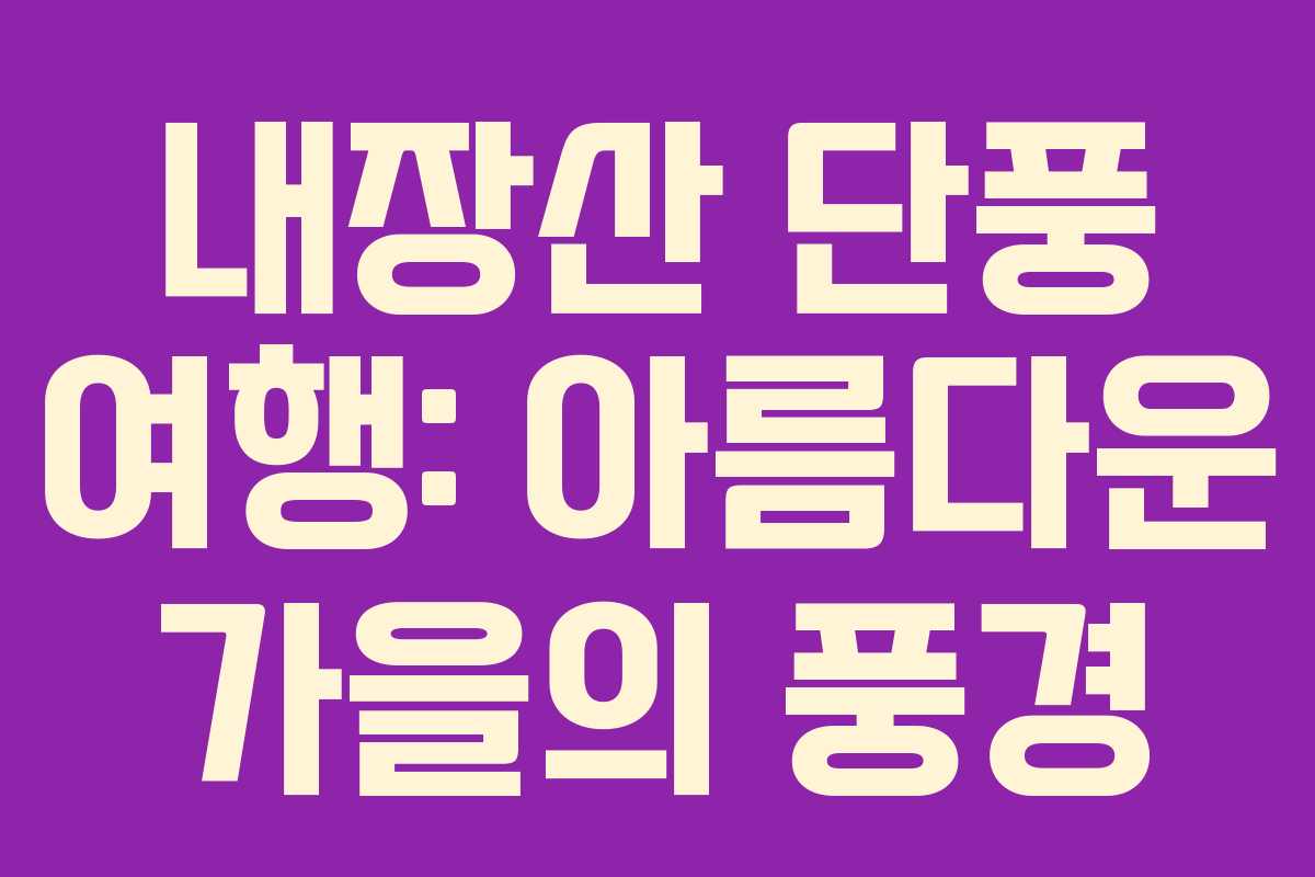 가을철 내장산은 단풍의 절정으로 많은 관광객들이 찾는 명소입니다. 이번 글에서는 내장산의 단풍을 즐기는 방법과 주요 코스, 주차 및 입장 정보 등을 자세히 소개합니다.