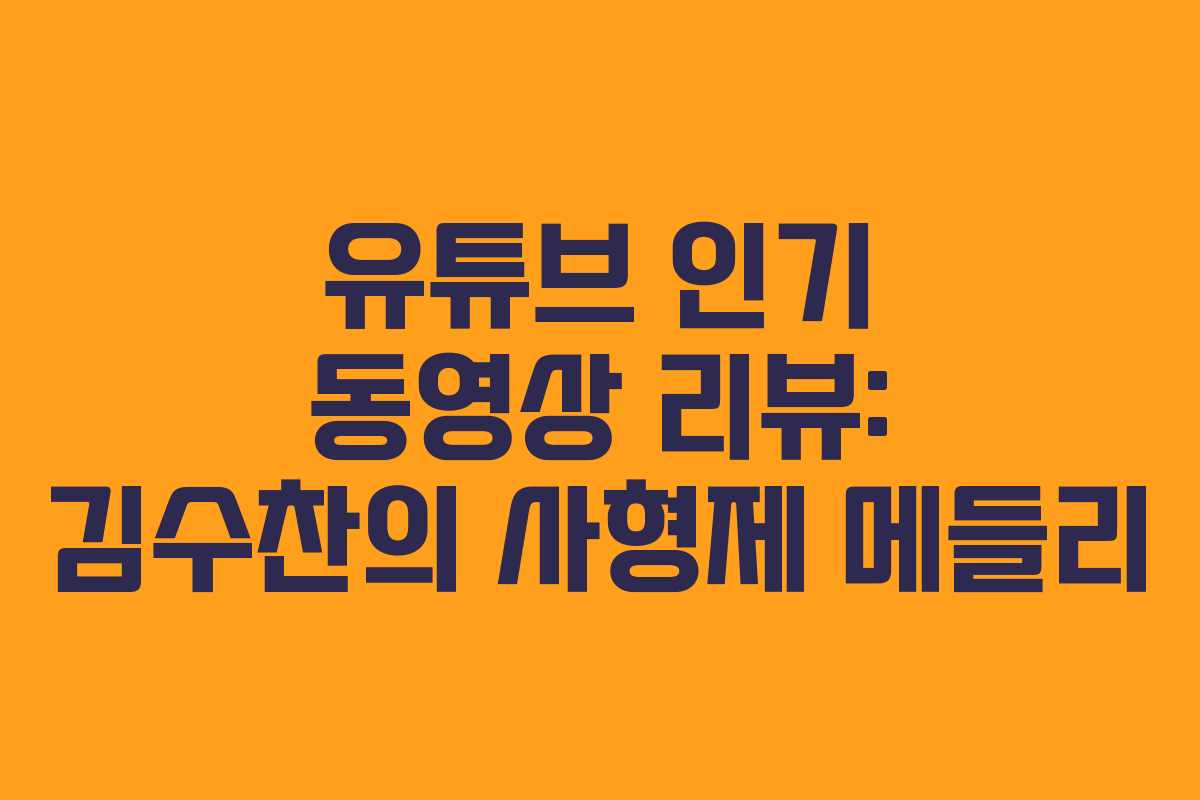 최근 유튜브에서 인기를 끌고 있는 동영상 중 하나는 미스터트롯 공식 계정에서 게시한 김수찬의 개인 직캠입니다. 이 영상은 “사형제 메들리”라는 제목으로, 다양한 곡들을 담고 있어 많은 사람들의 관심을 받고 있습니다. 영상의 길이가 길어지면 시청자들이 쉽게 지루해할 수 있는데, 이와 같은 상황에서 시간 절약을 위해 요약과 댓글을 참고하여 시청하는 방법에 대해 알아보겠습니다.