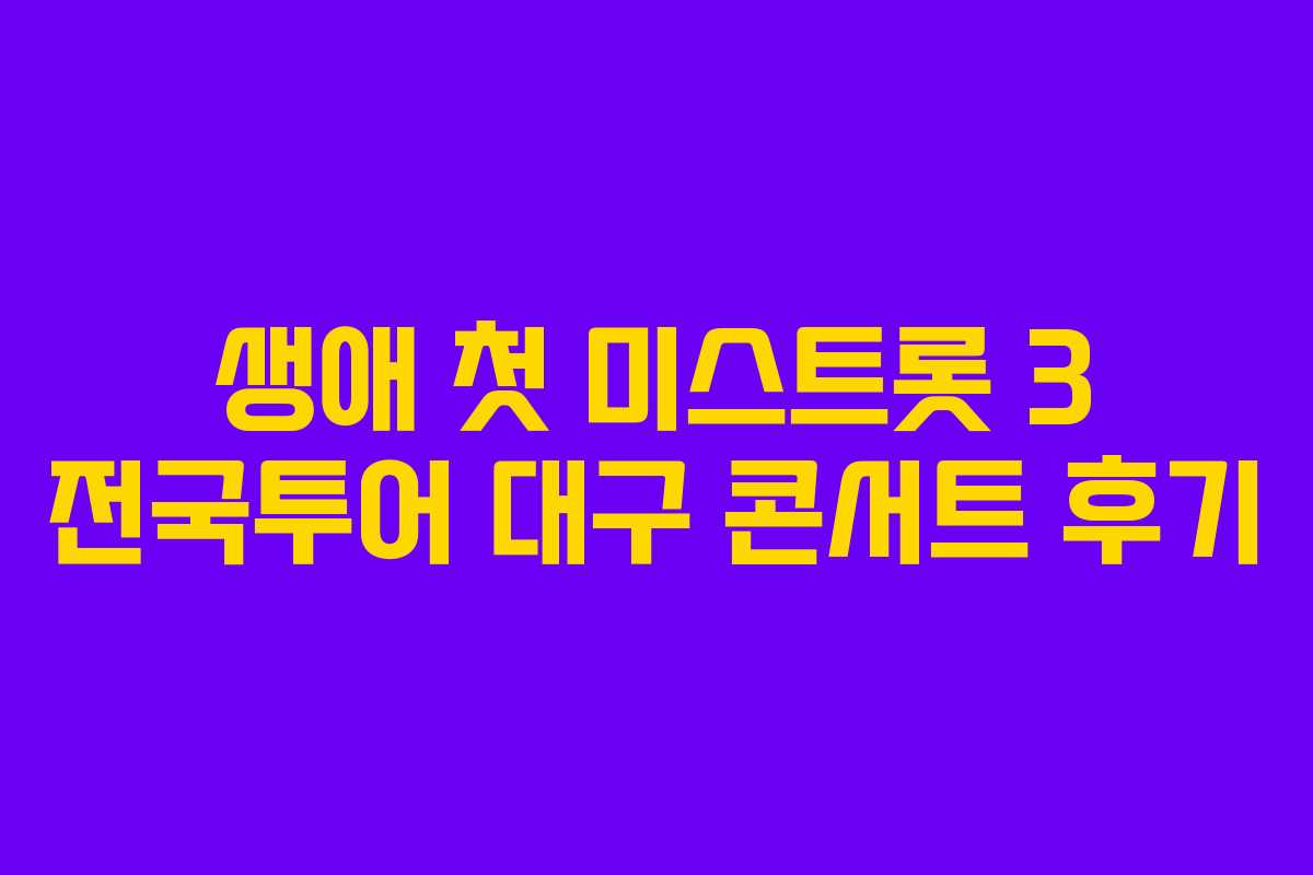 이번 주말, 대구에서 열린 생애 첫 미스트롯 3 전국투어 콘서트에 다녀왔습니다. 콘서트는 정말 기대가 컸고, TV로만 보던 무대를 실제로 보게 되어 설레는 마음을 감출 수 없었습니다.