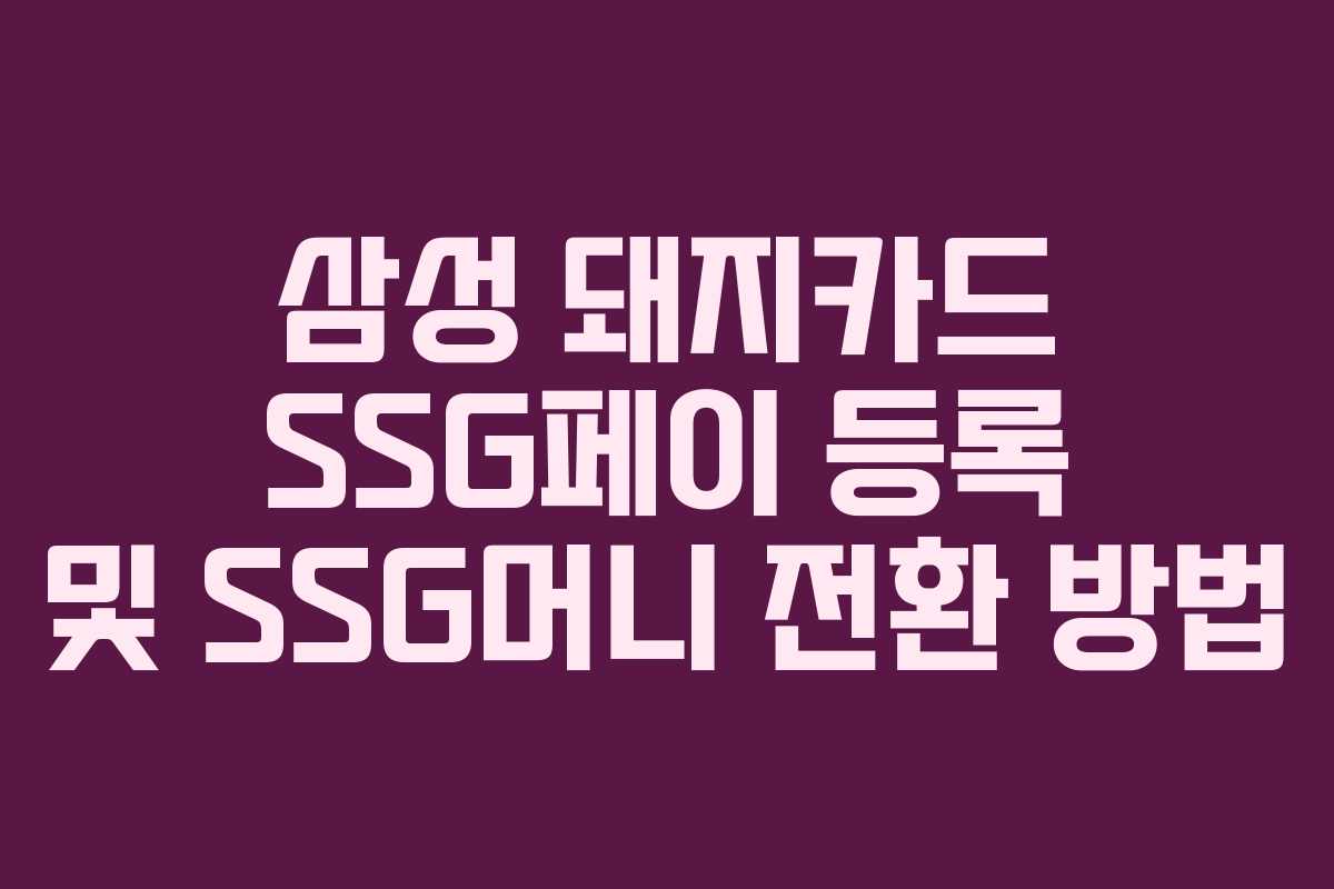 삼성 돼지카드는 SSG페이와 연계하여 다양한 혜택을 누릴 수 있는 신용카드입니다. 이 카드를 SSG페이에 등록하고 SSG머니로 전환하는 방법을 안내드립니다. 이를 통해 마일리지를 적립하고, 다양한 이벤트에 참여할 수 있습니다.