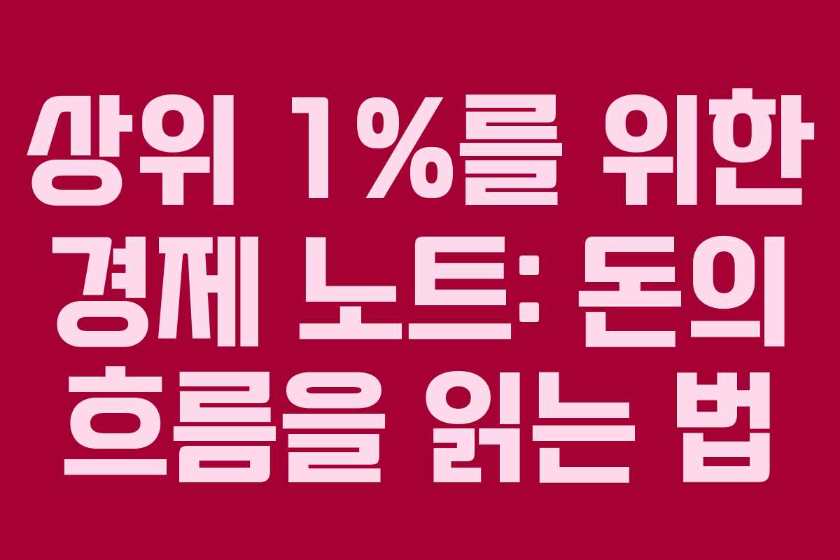 경제에 대한 지식을 쌓고 돈의 흐름을 이해하는 것은 상위 1%가 되는 데 필수적입니다. 많은 사람들이 매일 경제 뉴스를 확인하지 않지만, 상위 1%는 이를 통해 기회를 포착하고 재정적 결정을 내립니다. 이 글에서는 경제 흐름을 이해하고 활용하는 방법을 살펴보겠습니다.