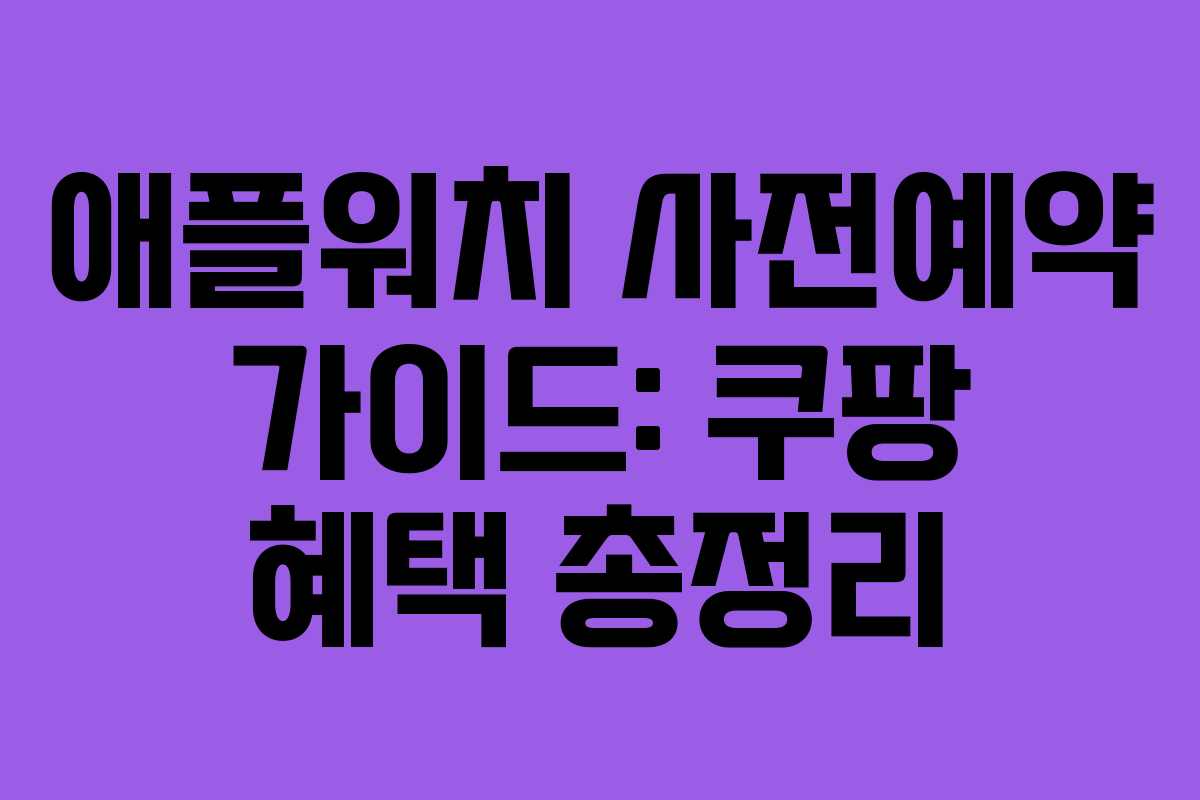 애플워치 사전예약 가이드: 쿠팡 혜택 총정리
