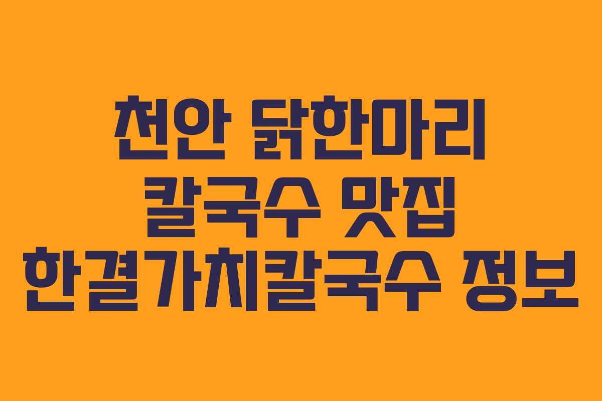 천안에 위치한 닭한마리 칼국수 맛집, 한결가치칼국수가 KBS 2TV 생생정보 프로그램에 소개되면서 많은 이들의 주목을 받고 있습니다. 이곳은 진한 국물 맛과 자가제면 면으로 유명하며, 가족 외식이나 모임 장소로 추천될 만큼 푸짐한 양을 자랑합니다. 이번 포스팅에서는 한결가치칼국수에 대한 기본 정보와 함께 방문 시 유용한 팁을 제공하겠습니다.
