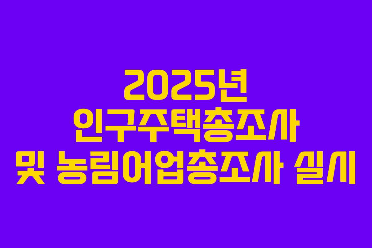 인구주택총조사는 2025년 11월 1일부터 18일까지, 농림어업총조사는 12월 2일부터 19일까지 실시될 예정입니다.