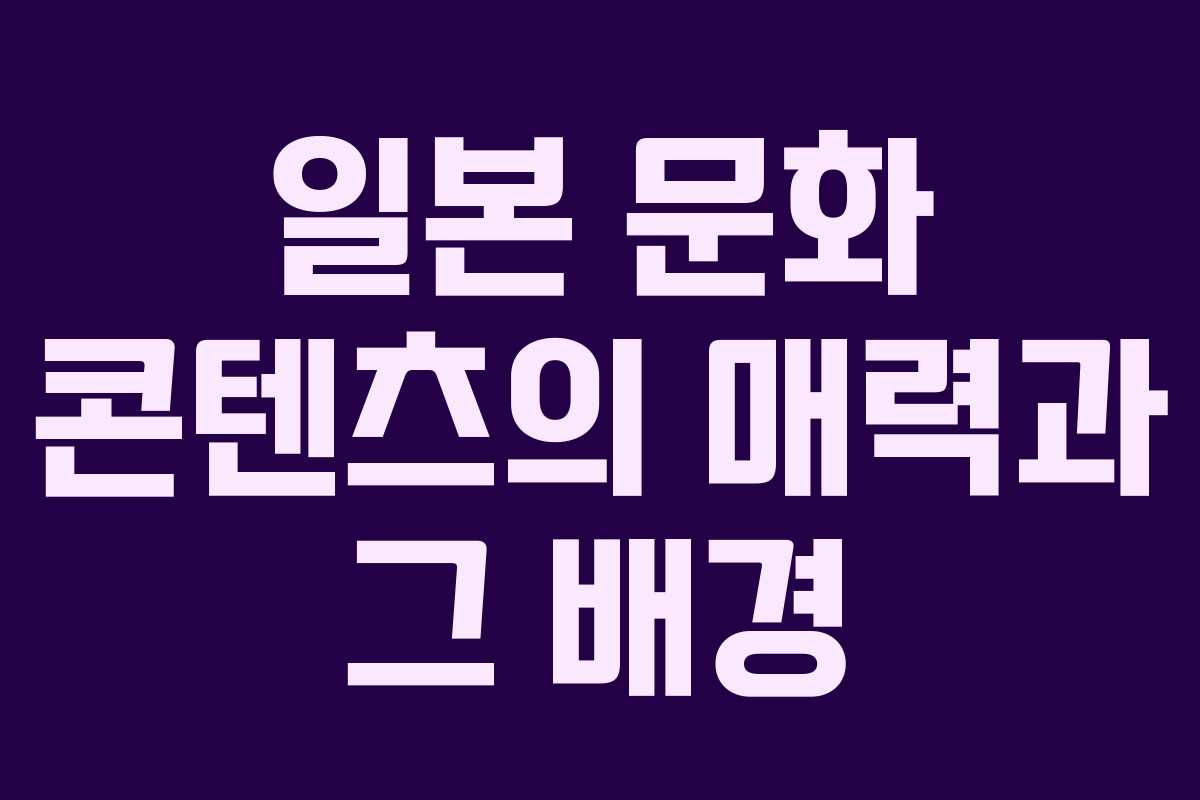 일본의 문화 콘텐츠는 독창적인 스토리와 다양한 장르로 많은 사람들의 호기심을 자극하며, 이를 통해 세계적으로 큰 인기를 끌고 있습니다.