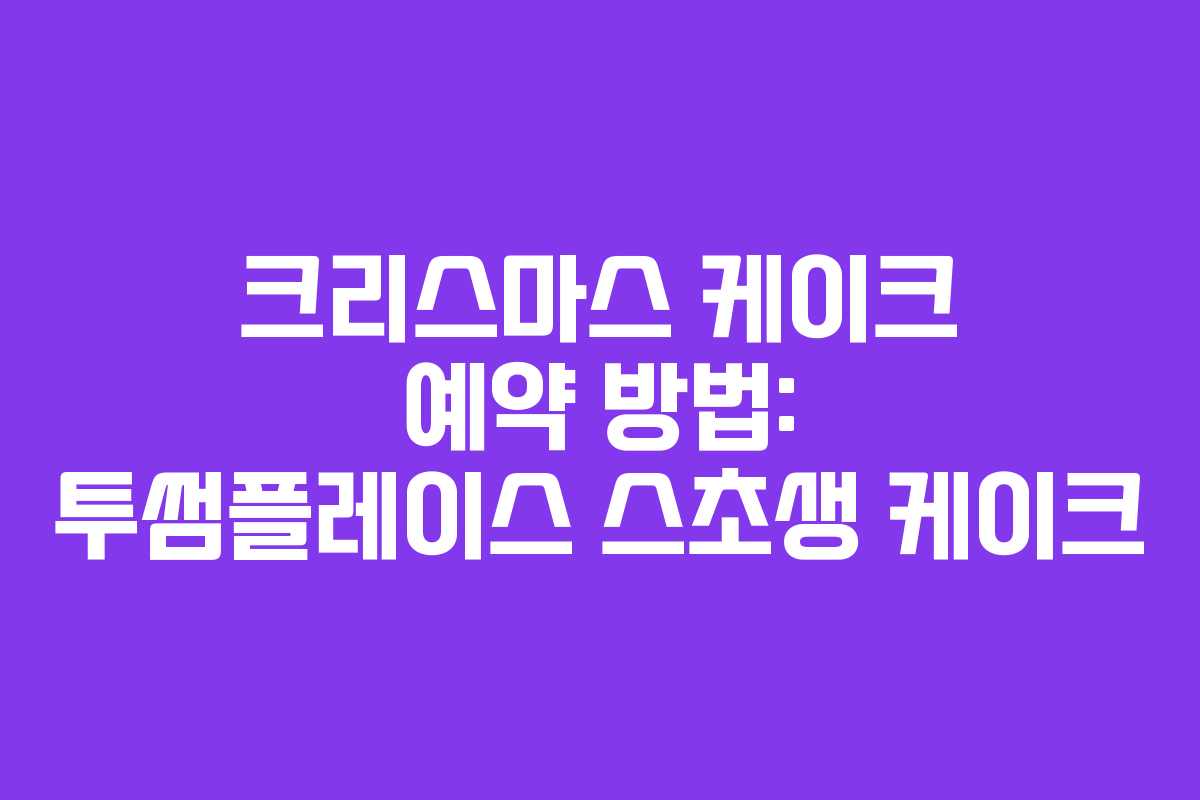 크리스마스를 맞아 어떤 케이크를 선택할지 고민하고 계신가요? 투썸플레이스의 스초생 케이크 예약 방법과 유용한 팁을 소개합니다. 특별한 순간을 더욱 달콤하게 만들어 줄 스초생 케이크를 놓치지 마세요!