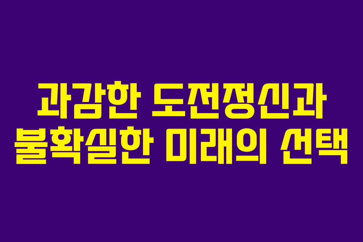 도전정신은 우리의 성장과 발전을 이끌어주는 원동력입니다. 불확실한 상황에서도 과감하게 나아갈 때 더 많은 기회를 얻을 수 있습니다.