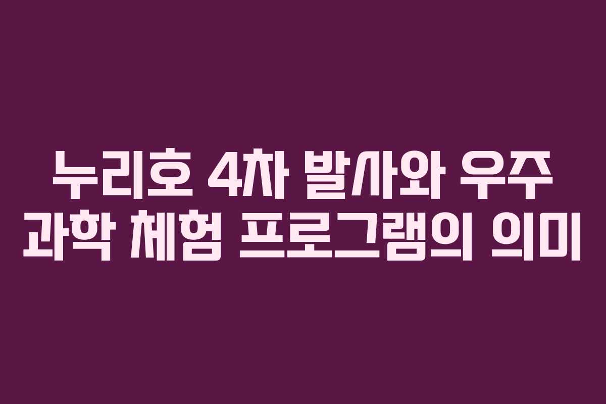 다가오는 누리호 4차 발사는 한국이 독자적인 기술로 우주에 도전하는 중요한 발걸음이 될 것입니다. 이번 발사를 통해 아이들은 멀게만 느껴졌던 우주가 한층 가까워지는 경험을 하게 될 것입니다. 이러한 체험 프로그램이 지속적으로 진행되어, 우주가 더 이상 멀게 느껴지지 않는 세상이 되기를 기대합니다.