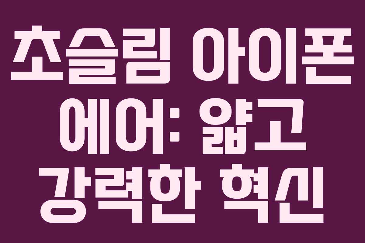 아이폰 에어는 놀라운 기술과 디자인의 조화를 이루며, 얇으면서도 강력한 성능을 자랑하는 스마트폰입니다. 오늘은 이 혁신적인 제품의 주요 특징과 성능을 살펴보겠습니다.
