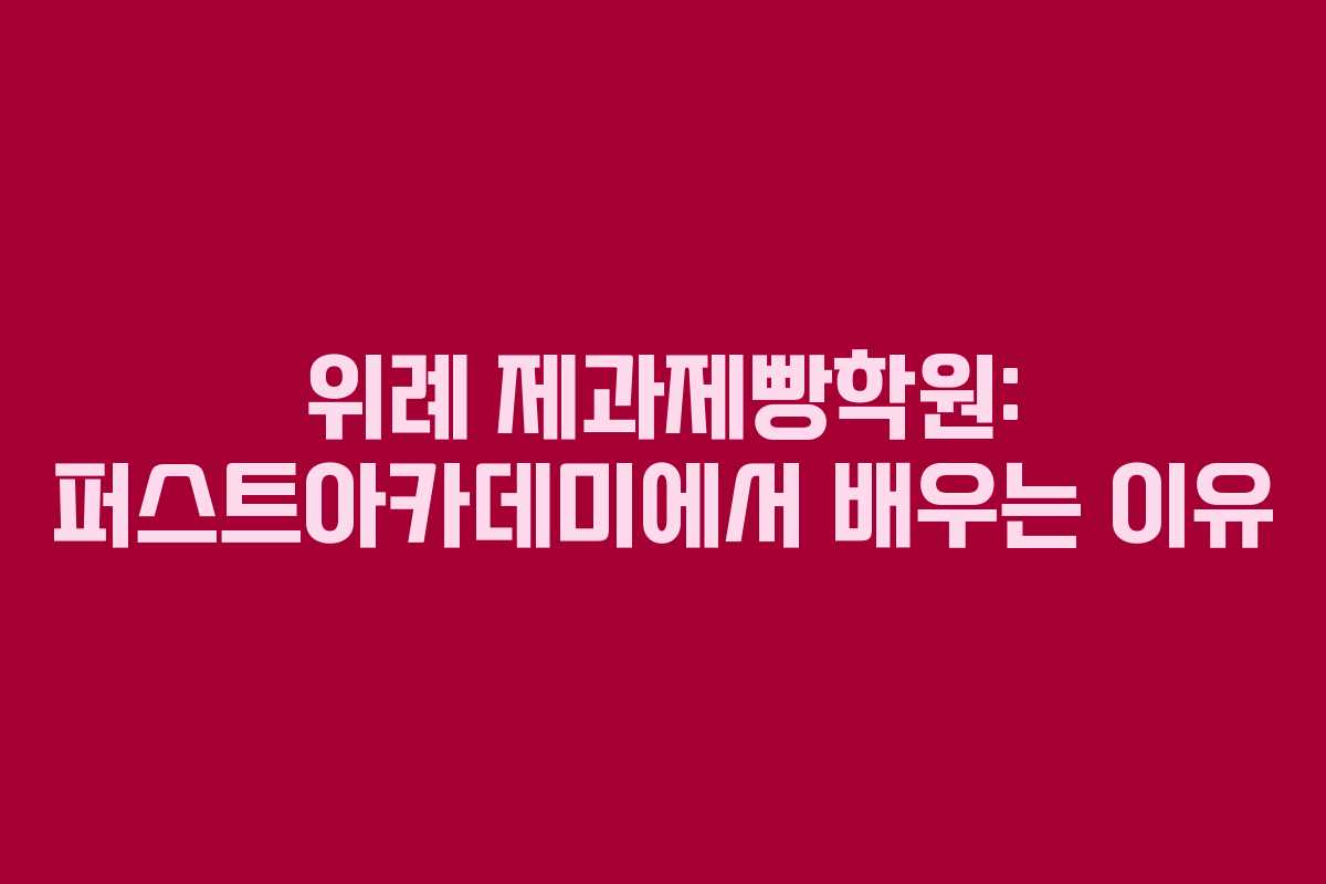 최근 날씨가 따뜻해지면서 위례 지역에서 제과제빵학원을 찾는 분들이 늘고 있습니다. 특히, 남위례역 근처에 위치한 퍼스트아카데미는 국비과정으로 제과제빵을 배울 수 있는 좋은 기회를 제공합니다. 이번 글에서는 퍼스트아카데미를 선택해야 하는 세 가지 이유를 살펴보겠습니다.