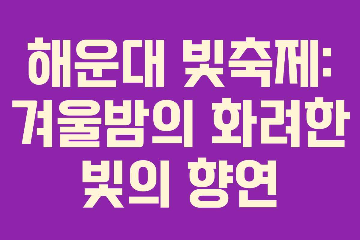 해운대의 겨울밤을 화려하게 장식하는 해운대 빛축제가 매년 12월에 열리며, 많은 이들의 기대를 모으고 있습니다. 이번 축제는 다양한 조명과 미디어 아트가 어우러져 특별한 경험을 제공합니다.