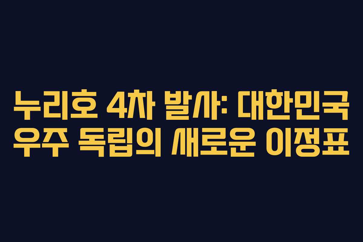 누리호 4차 발사: 대한민국 우주 독립의 새로운 이정표