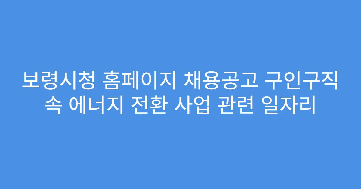 ⚡ 보령시청 홈페이지 채용공고 구인구직 속 에너지 전환 사업 관련 일자리 활용 효율을 높이는 방법