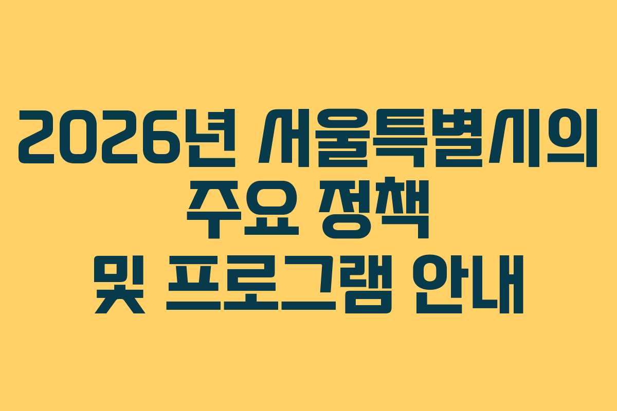 2026년 서울특별시의 주요 정책 및 프로그램 안내