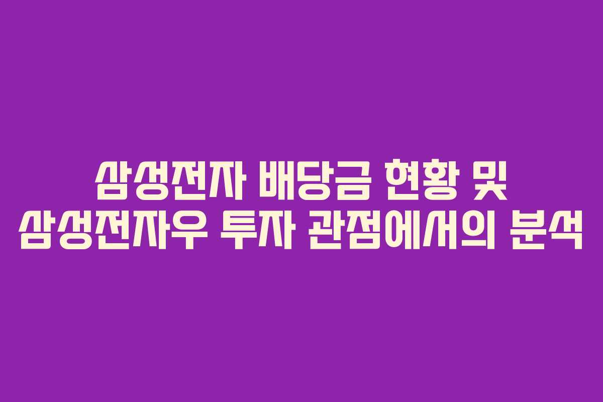 삼성전자의 배당금은 안정적인 수익원이 될 수 있는 요소입니다. 특히 삼성전자우는 일반 주식 대비 상대적으로 높은 배당률을 제공하여 매력적입니다. 그러나 두 종목의 지급 방식과 성장 가능성은 상이하므로, 세심한 분석이 필요합니다.