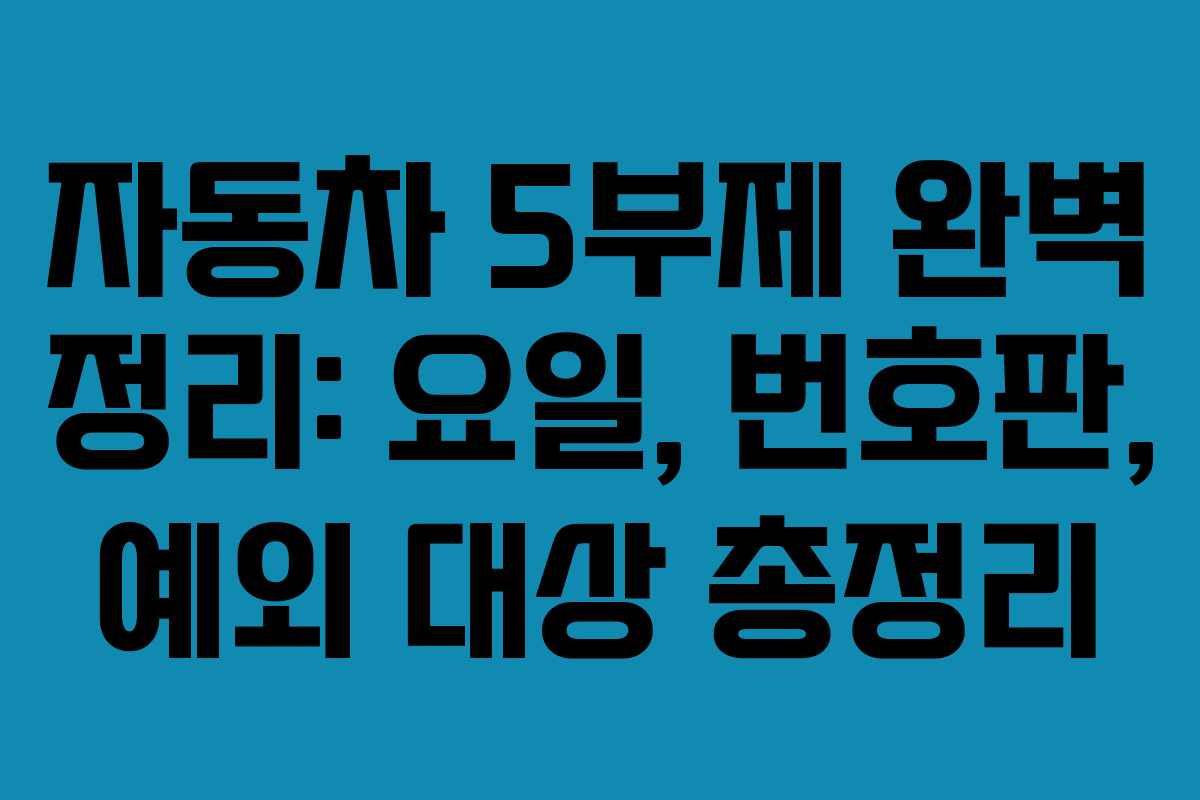 자동차 5부제는 번호판 끝자리 숫자에 따라 요일별 운행 제한을 설정하고 있습니다. 주말과 공휴일에는 적용되지 않으며, 평일 오전 6시부터 오후 9시까지 운행이 제한됩니다. 번호판 끝자리와 해당 요일은 다음과 같습니다.