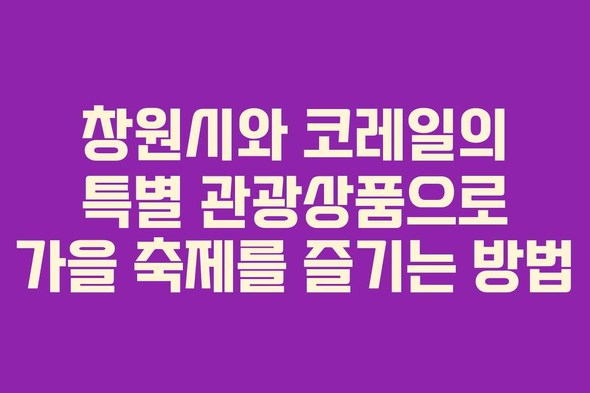 창원시는 코레일과의 협업을 통해 가을 축제를 특별하게 즐길 수 있는 기회를 제공하고 있다. 이 패키지를 통해 많은 사람들이 창원의 아름다움과 다양성을 경험할 수 있기를 기대한다.