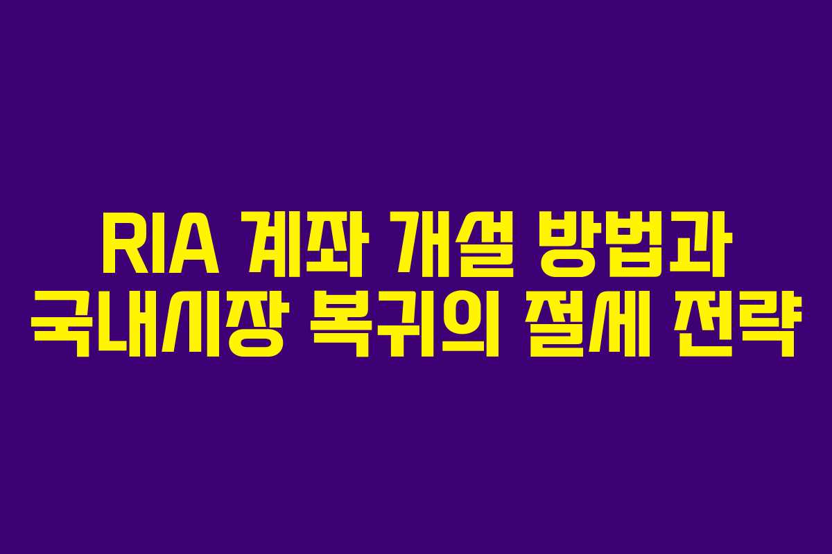 RIA 계좌는 Reshoring Investment Account의 약자로, 해외에서 자금을 국내로 되돌리는 계좌입니다. 이 계좌는 기존의 해외주식 계좌와는 다른 개념으로, 절세를 목적으로 신규로 개설하는 전용 계좌입니다. 이 제도의 핵심은 해외주식을 RIA 계좌로 옮긴 후 매도하고, 그 자금을 원화로 환전하여 국내 주식에 투자하면 양도소득세를 면제받을 수 있다는 점입니다. 정부는 이 제도를 통해 해외로 나간 자금을 국내로 유도하고자 하며, 투자자들은 세금 부담 없이 수익을 정리할 수 있는 기회를 갖게 됩니다.