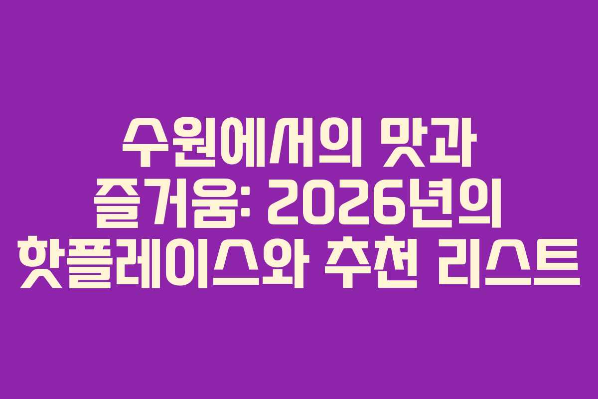 수원은 다양한 맛집과 특별한 경험이 가득한 도시입니다. 특히, 2026년 상반기에는 더욱 다채로운 행사와 맛있는 음식들이 기다리고 있습니다. 이번 포스팅에서는 수원에서 놓치지 말아야 할 맛집과 즐길 거리, 그리고 유용한 정보를 제공하겠습니다.