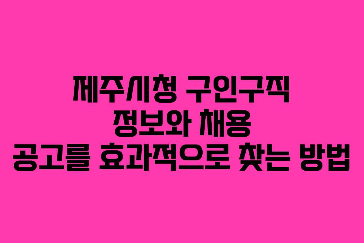 제주시청 구인구직 정보 활용을 위한 실전 가이드