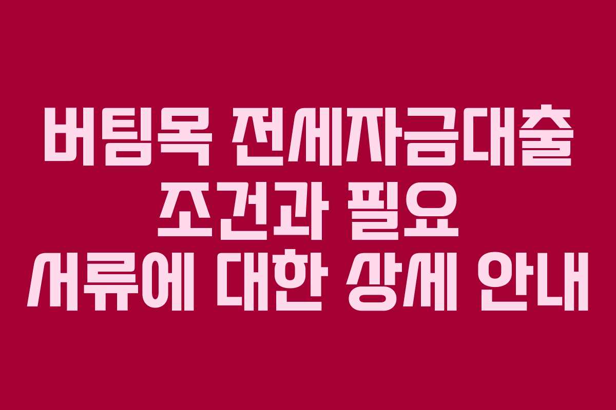 - 2026년 기준 버팀목 전세자금대출 조건은 무엇인가