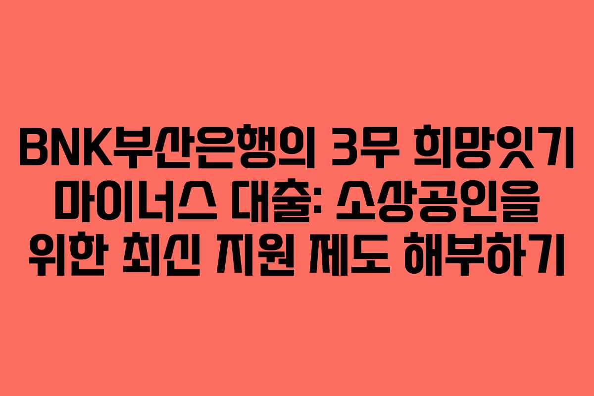 BNK부산은행의 3무 희망잇기 마이너스 대출: 소상공인을 위한 최신 지원 제도 해부하기