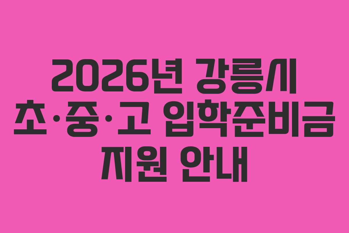 강릉시에 주민등록을 두고 있는 2026년 초·중·고등학교 1학년 입학생이 대상이며, 입학 여부가 확인되어야 합니다.
