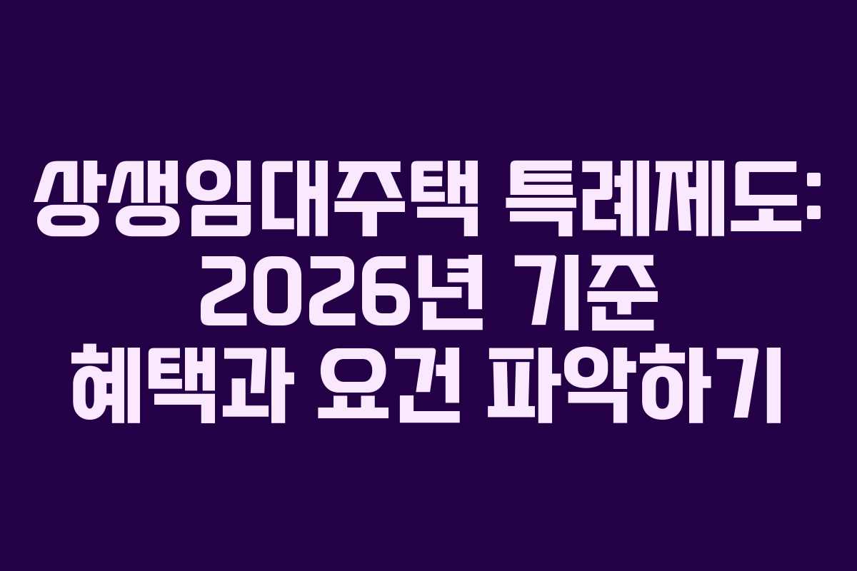 부동산 임대주택을 소유한 분들에게는 상생임대주택 특례제도가 중요한 의미를 가집니다. 이 제도는 임대인과 임차인 간의 주거 안정성을 도모하며, 양도소득세 비과세 혜택을 제공합니다. 2026년을 기준으로 이 제도의 혜택 요건과 주의사항을 함께 살펴보겠습니다.